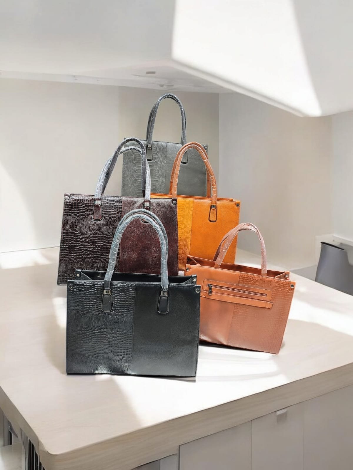 Elegant Dual-Texture Leather Tote Bags – Office Chic Collection by Cuir Hide