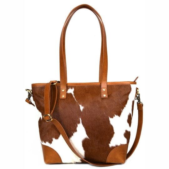 Classic Tan & White Cowhide Leather Tote Bag by Cuir Hide