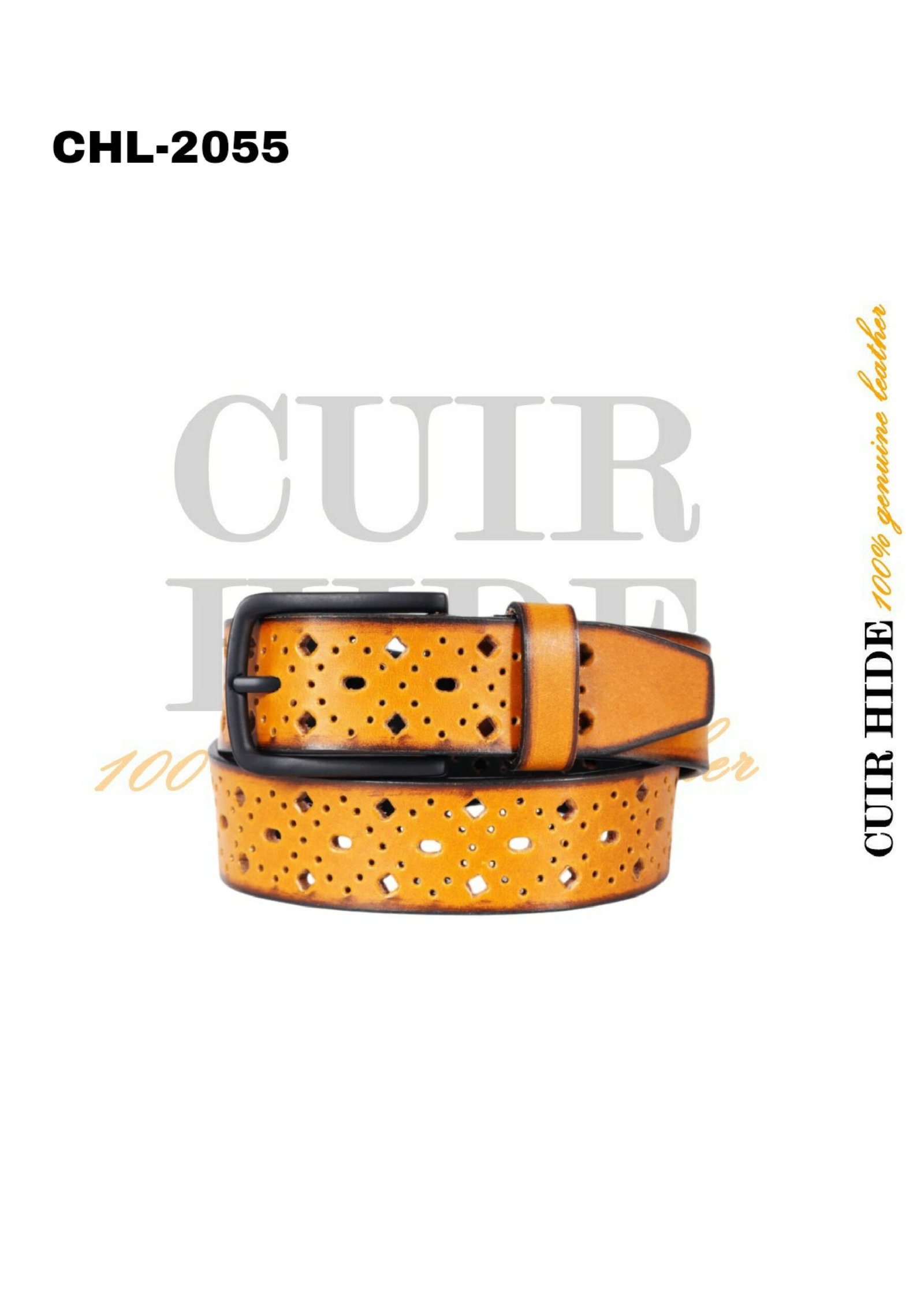Perforated Yellow Grain Leather Belt by Cuir Hide CHL-2055