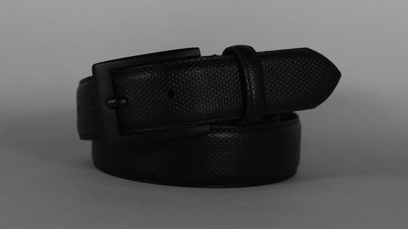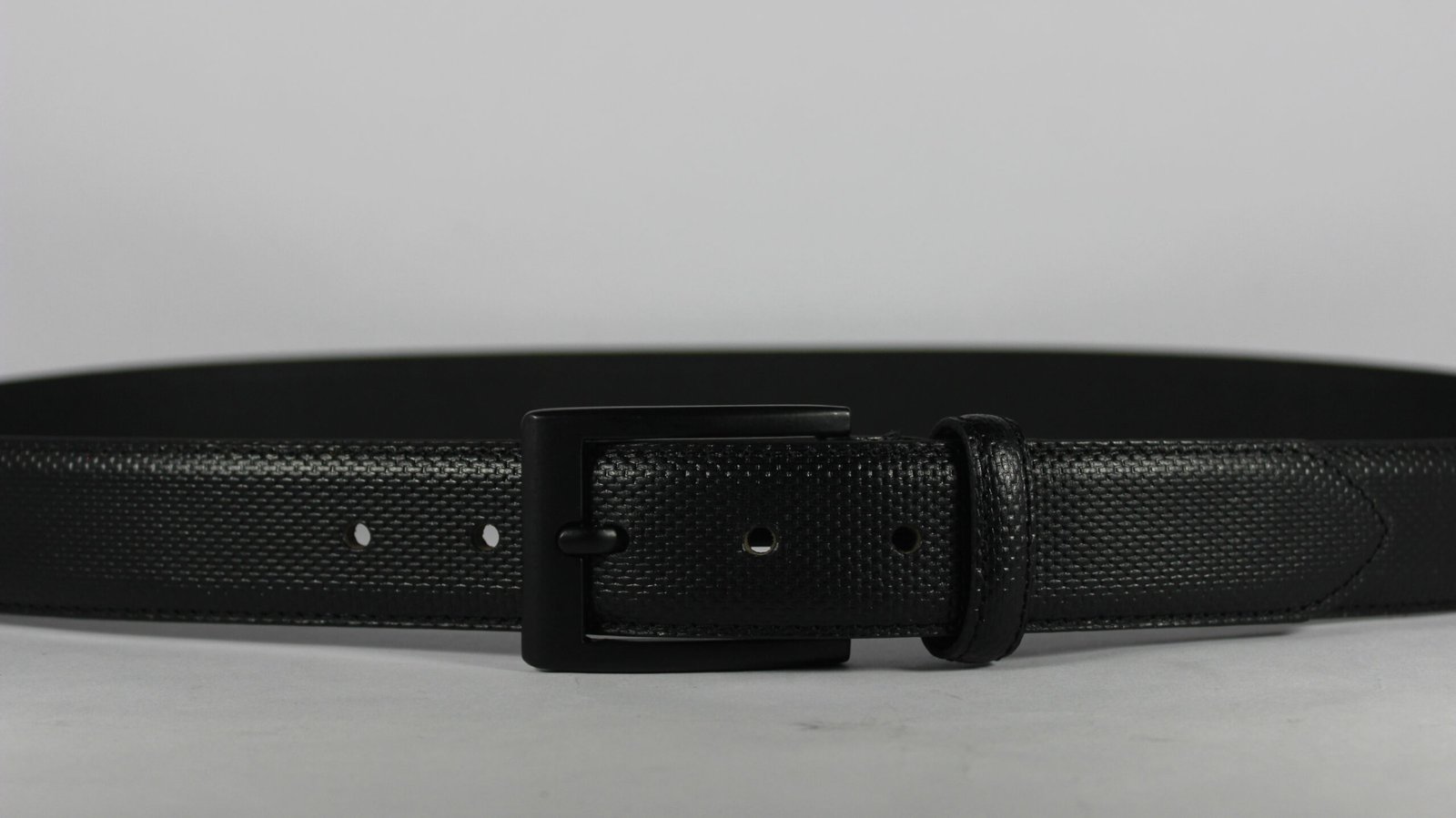 black textured leather belt. 1year warranty provided by brand/manufacturer. deck out your wardrobe with this fashionable black belt from